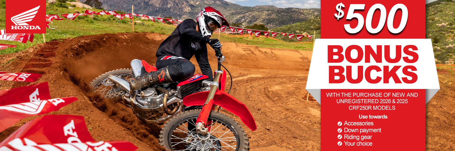Fixed APR starting at 3.99% on 2024 CRF250RX